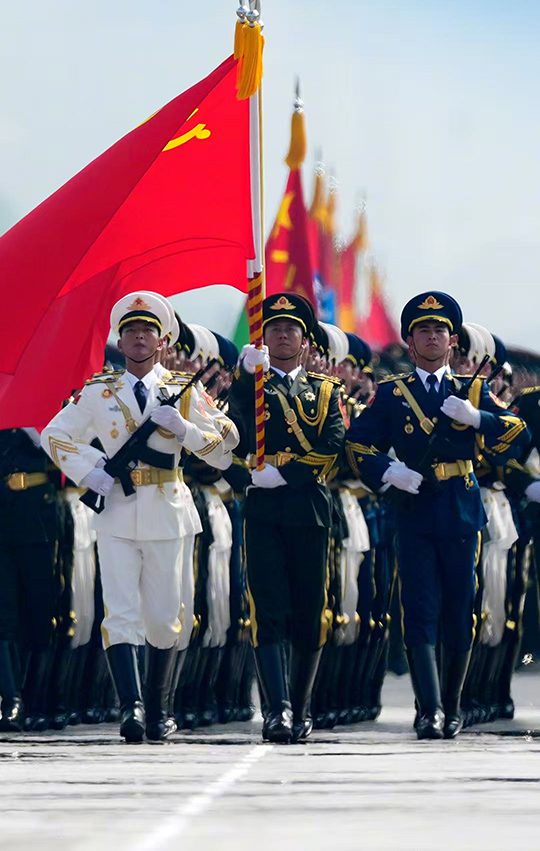 午前10時、軍事パレードが始まると、厳粛な国歌が演奏され、参加者全員が自発的に起立して敬意を表した。整然とした歩列、洗練された装備の軍備、雄大な空中梯団は皆に深い衝撃を与え、中国の国防力の向上を示した。抗日戦争英雄部隊の栄誉旗80枚の掲揚も、人々に勝利がいかに苦労して勝ち取ったかを実感させた。