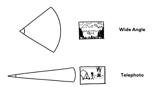 焦点距離が短いレンズ (mm 単位の数値が小さい) は、より広いシーンを撮影できるため、通常は広角レンズと呼ばれます。焦点距離が長い (mm 単位が大きい) と望遠レンズと呼ばれることが多く、光学倍率が大きくなり、より遠くから画像をキャプチャできるようになります。